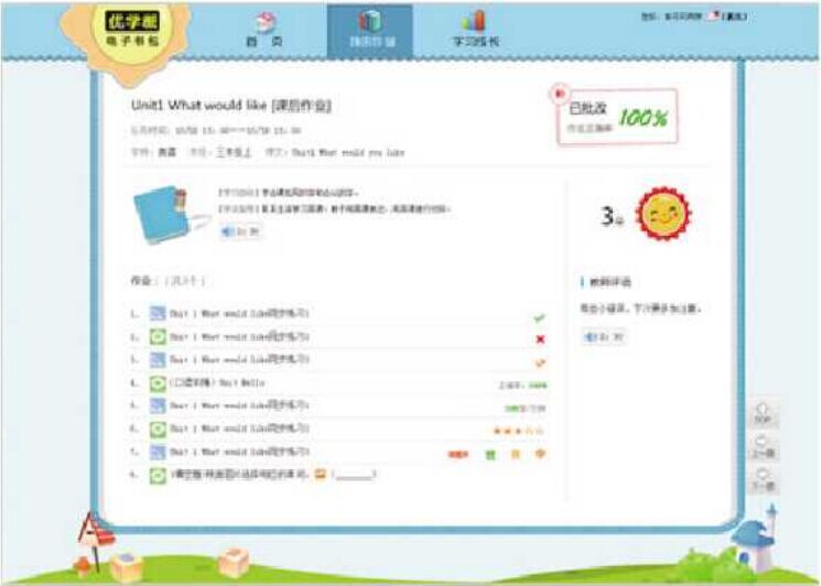 小新星教育集团长沙直营校的饶笑笑老师深有体会,作为一位带班7年的教师,同期学生人数200余人,不同年龄层及不同教材选择的学员们所产生的课业量非常大。使用电子书包之前,每周平均至少需要花费一天时间进行作业批改,而通过作业平台,老师仅用半个小时便可大致了解所有学生作业完成的基本情况,如有主观题型的作业也可缩短至四十分钟左右完成,而多出的时间老师可以更加效率的进行作业短评及备课。不仅老师自己觉得工作效率得到提高,学生历次完成情况也有了数据化的反馈,家长更感慨查看家庭作业直观便捷了许多。